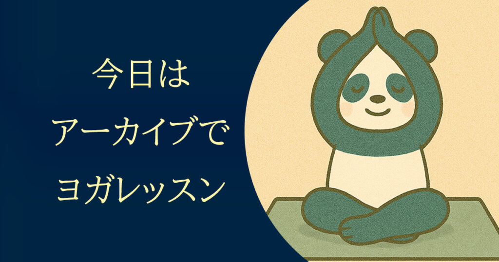 気がついたら昼近くになっていた今日、健康的な生活とは程遠い感じになってしまいましたが、せめてアーカイブのヨガを見てみようじゃないかと、やってみました。